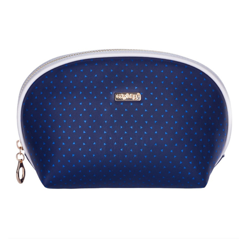 Cestovná guľatá kozmetická taška v modrom prevedení. Vhodná na uskladnenie toaletných a kozmetických potrieb menšej veľkosti. Materiál 100% polyester. prečítať celé