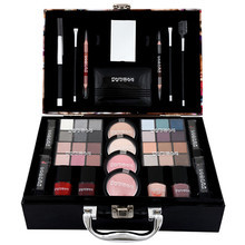 Make-Up Box Miss - Kosmetický kufřík dekorativní kosmetiky obsahuje:- 4 paletky 6 očních stínů- 4 rtěnky- 2 tvářenky- 2 rozjasňovače- 2 tužky na oči- 2 tužky na rty- 4 laky na nehty - 1 zrcátko- 1 cestovní obal na oční stíny- 4 štětce a pěnové aplikátory- rozměry: 25 x 17 x 9.5
