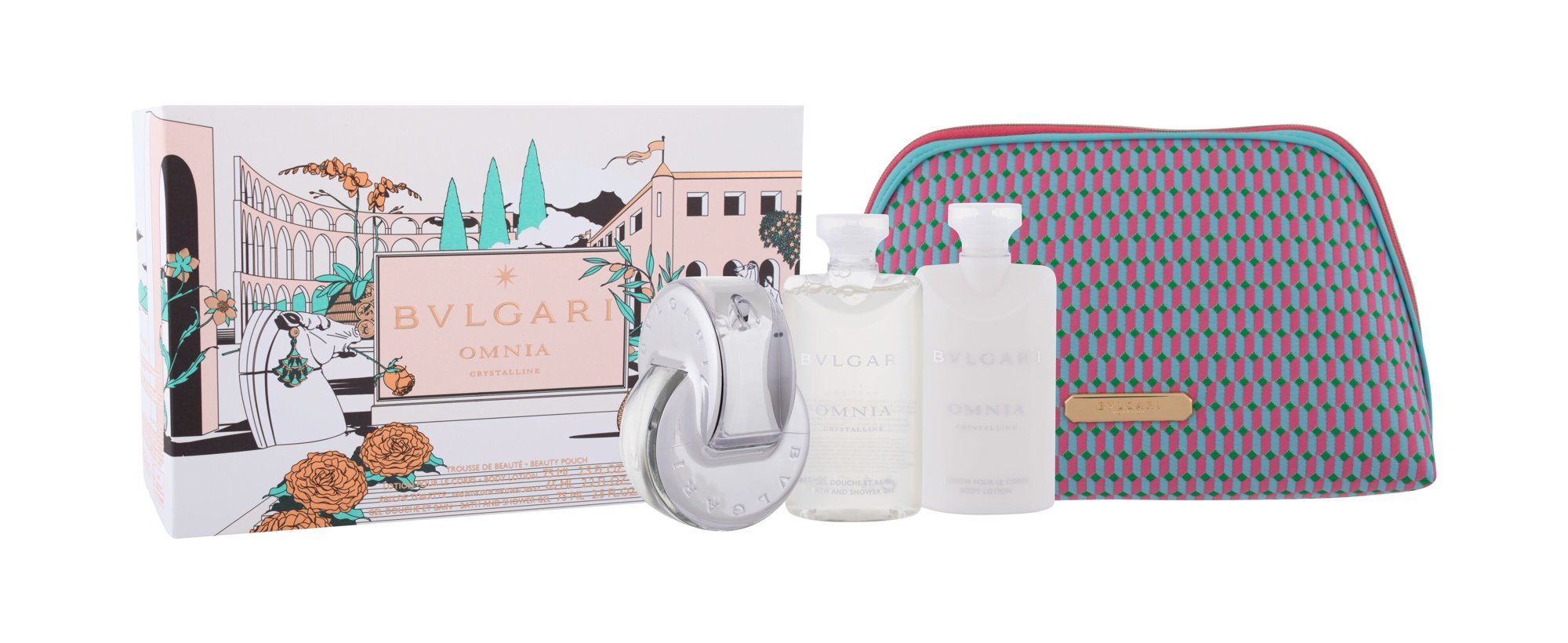 Bvlgari Omnia Crystalline toaletní voda 65 ml + sprchový gel 75 ml + tělové mléko 75 ml + kosmetická taška