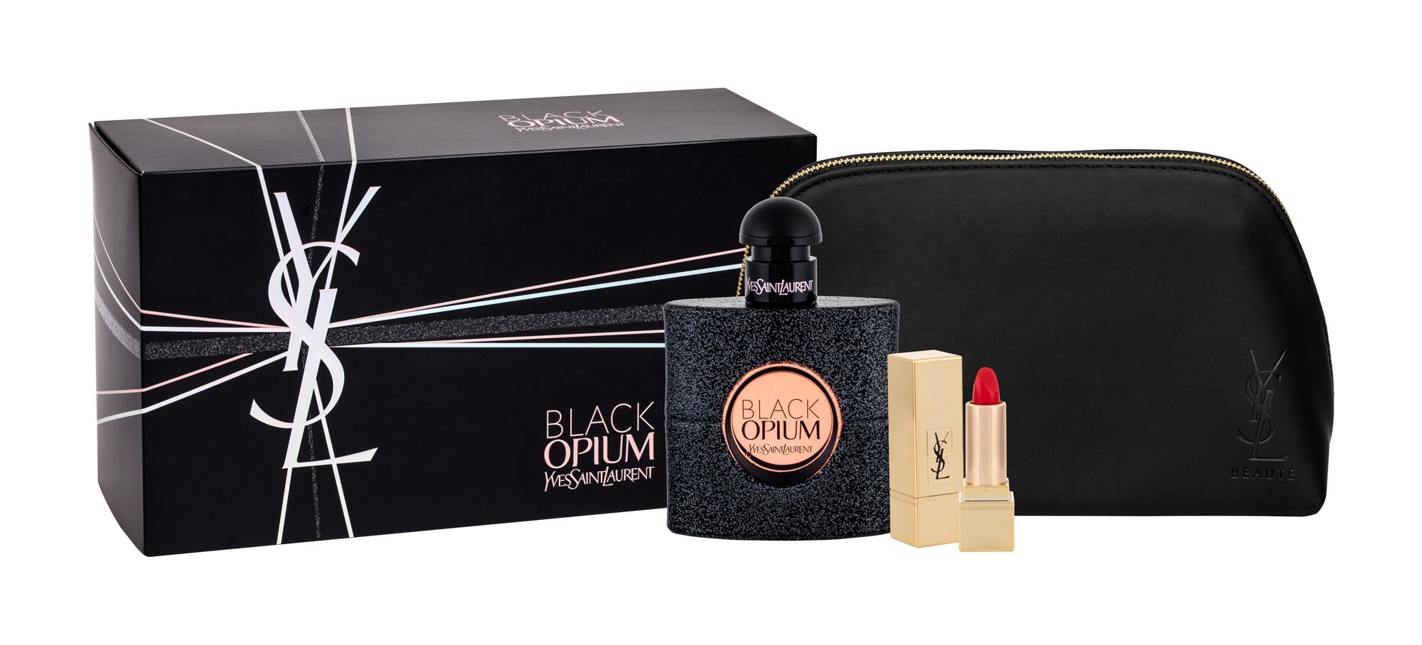 Yves Saint Laurent Black Opium parfémovaná voda 50 ml + rtěnka Rouge Pur Couture 1,3 ml odstín 1 + kosmetická taška