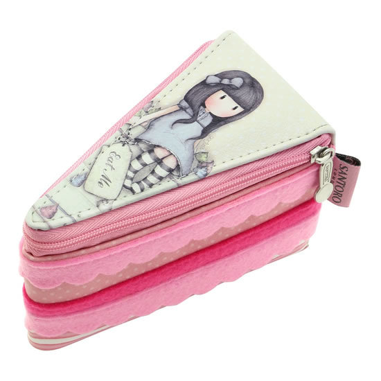 Kosmetická taška Sweet Cake. Taška je ve tvaru 1/8 dortu, který zdobí motiv panenky sedící na dortu. Pro uložení kosmetiky a různých drobností, bude jistě ideálním pomocníkem. Celkově se taštička uzavírá na zip a k její údržbě Vám postačí vlhký hadřík. Rozměry: 7 x 8 x 13 cm.