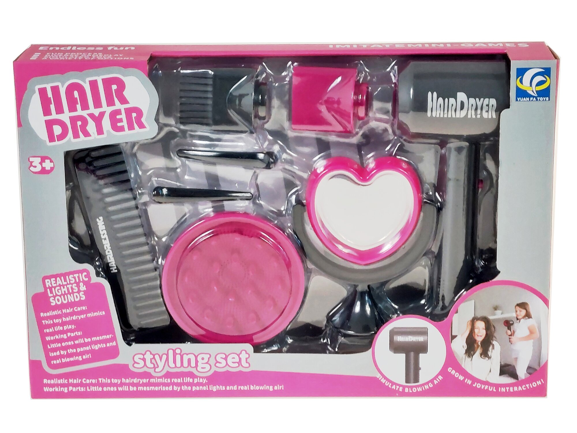 Kosmetický set s fénem na baterie; 39x26,5x7cm, 2xAA nejsou součástí prečítať celé