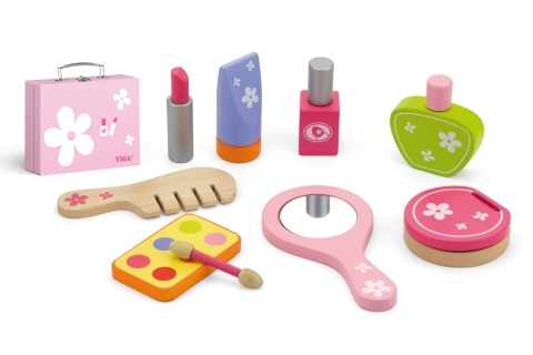 Drevená sada krásy. Balenie obsahuje hrebeň, zrkadlo, lak na nechty a ďalšie doplnky. Všetko je zabalené do praktického dreveného kufríka. Rozmery balenia cca 21 x 16 x 6,5 cm. Vek 3+ prečítať celé