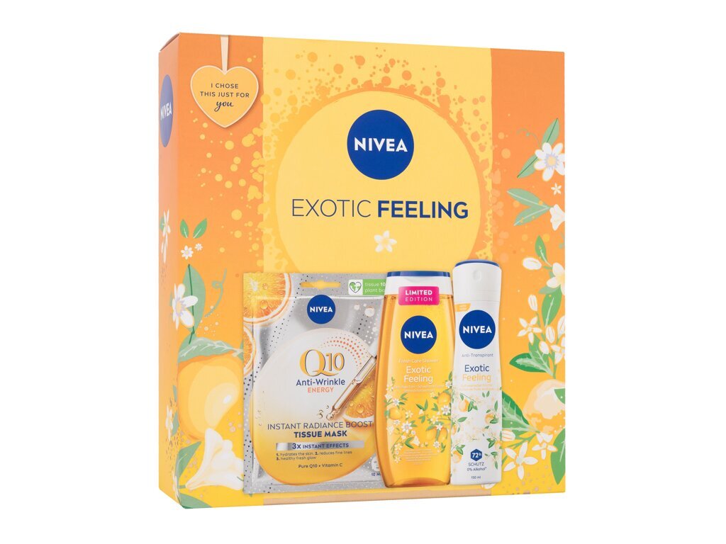 Nivea Exotic Feeling antiperspirant Exotic Feeling 150 ml + sprchový gel Exotic Feeling 250 ml + pleťová maska Q10 Anti-Wrinkle Energy 1 ks
