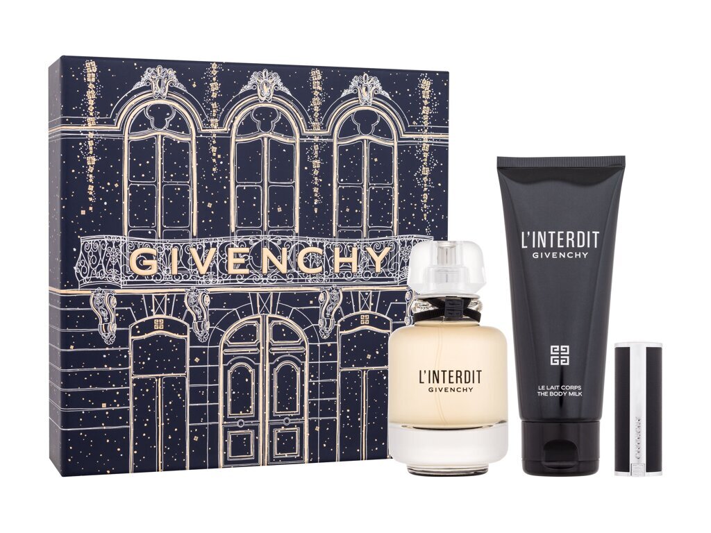 Givenchy L'Interdit parfémovaná voda 50 ml + tělové mléko 75 ml + rtěnka Le Rouge Interdit Intense Silk 1,5 g 333