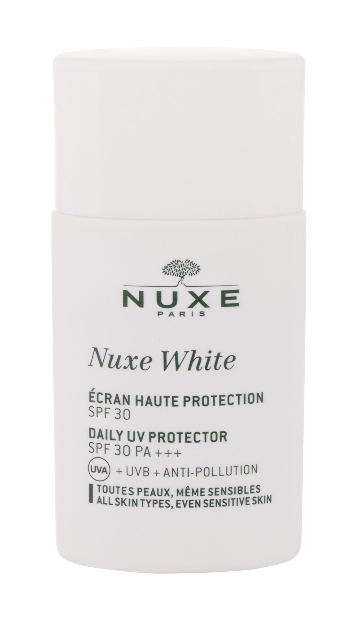 Ochranný pleťový krém NUXE Nuxe White Daily UV Protector SPF30 je užitečný pomocník pro ty zvás, které chtějí svojí pleť chránit před účinky slunečního záření po celý rok. To je jedině dobře, neboť UV záření negativně ovlivňuje kvalitu pleti a způsobuje její předčasné stárnutí.