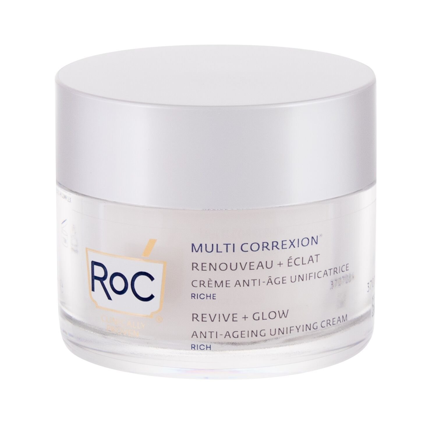 Obnovte mladistvý vzhled své pleti s vyživujícím krémem RoC Multi Correxion Revive + Glow Anti-Ageing Unifying Cream. Proniká do hlubších vrstev pleti, kde doplňuje potřebnou vláhu a vyplňuje vrásky. Dodává matné pleti novou energii a osvěžuje ji. Zanechává ji hedvábně jemnou a projasněnou.