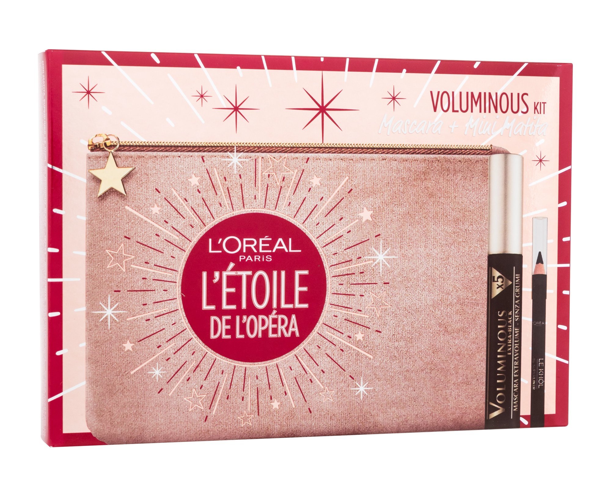 L´Oréal Paris Voluminous řasenka Voluminous 7,5 ml + tužka na oči Superliner Le Khol 0,8 g 101 Midnight Black + kosmetická taštička