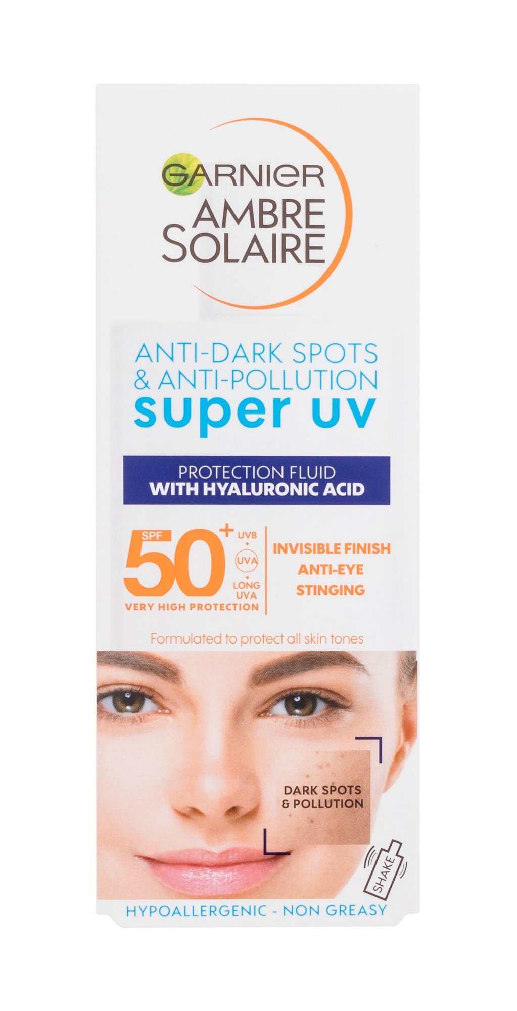 Garnier Ambre Solaire Opalovací přípravek na obličej Super UV Protection Fluid 40 ml SPF50+ unisex