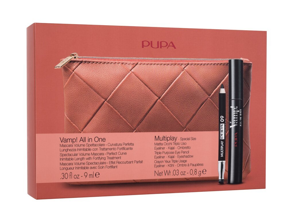 Pupa Vamp! řasenka Vamp! All In One 9 ml + tužka na oči Multiplay 0,8 g 09 Deep Black + kosmetická taštička