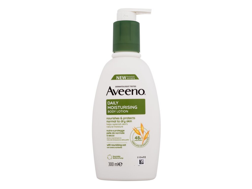 Vyživte a ochraňte svou pokožku před suchostí s tělovým mlékem Aveeno Daily Moisturising Body Lotion. Hydratuje normální až suchou pokožku po dobu 48 hodin a zabraňuje poškození vnějšími agresory.