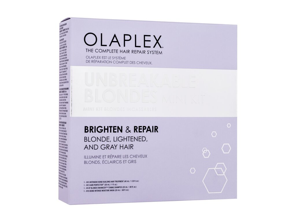 Olaplex Unbreakable Blondes sérum na vlasy Intensive Bond Building Hair Treatment No.0 40 ml + balzám na vlasy Hair Perfector No.3 30 ml + šampon Blonde Enhancer Toning Shampoo No. 4P 20 ml + maska Bond Intense Moisture Mask No. 8 20 ml