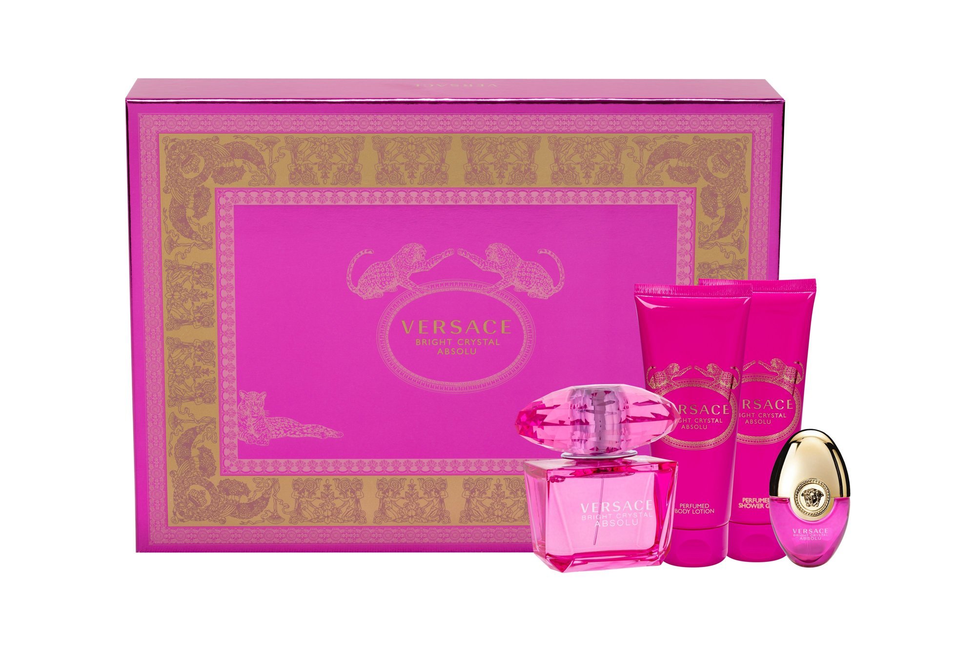 Versace Bright Crystal Absolu Dárková sada Parfémová voda 90 ml, sprchový gel 100 ml, miniaturka Parfémová voda 10 ml a tělové mléko 100 ml