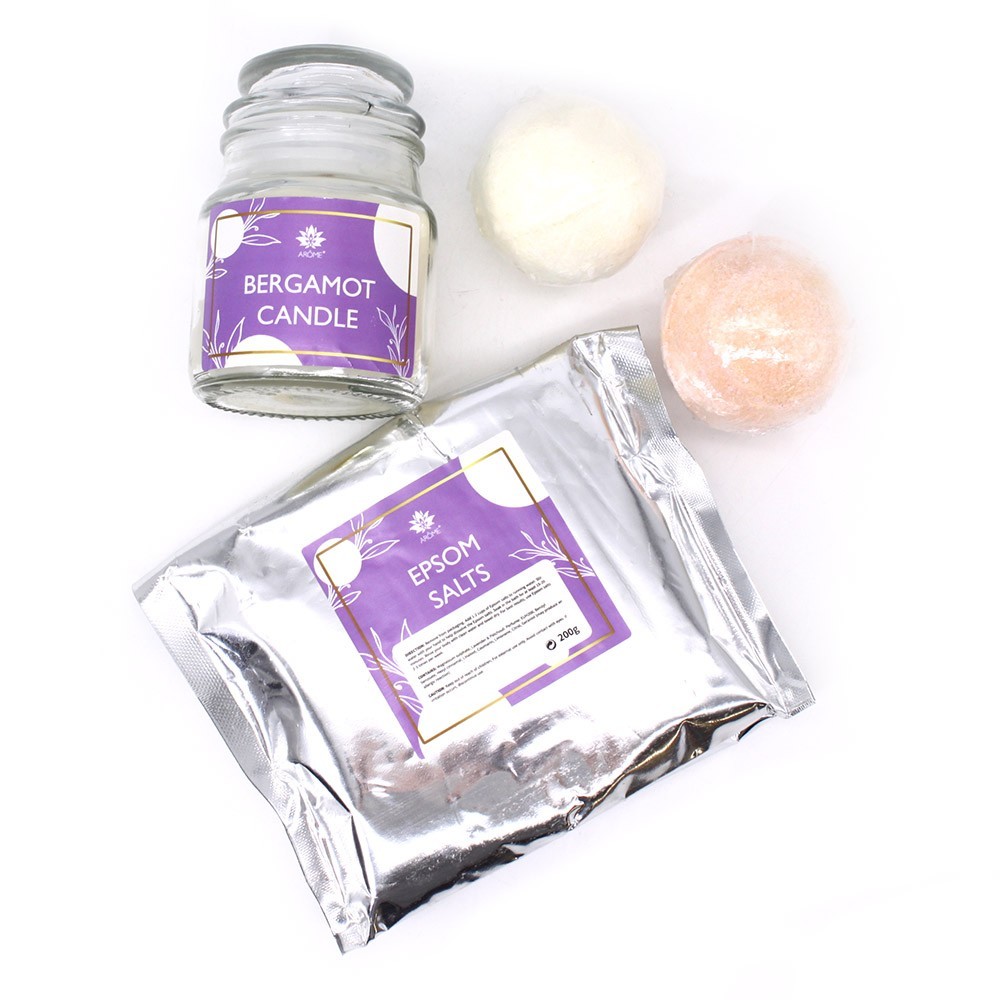 ARÔME Dárková sada 1 svíčka, 2 koupelové bomby, 1 koupelová sůl