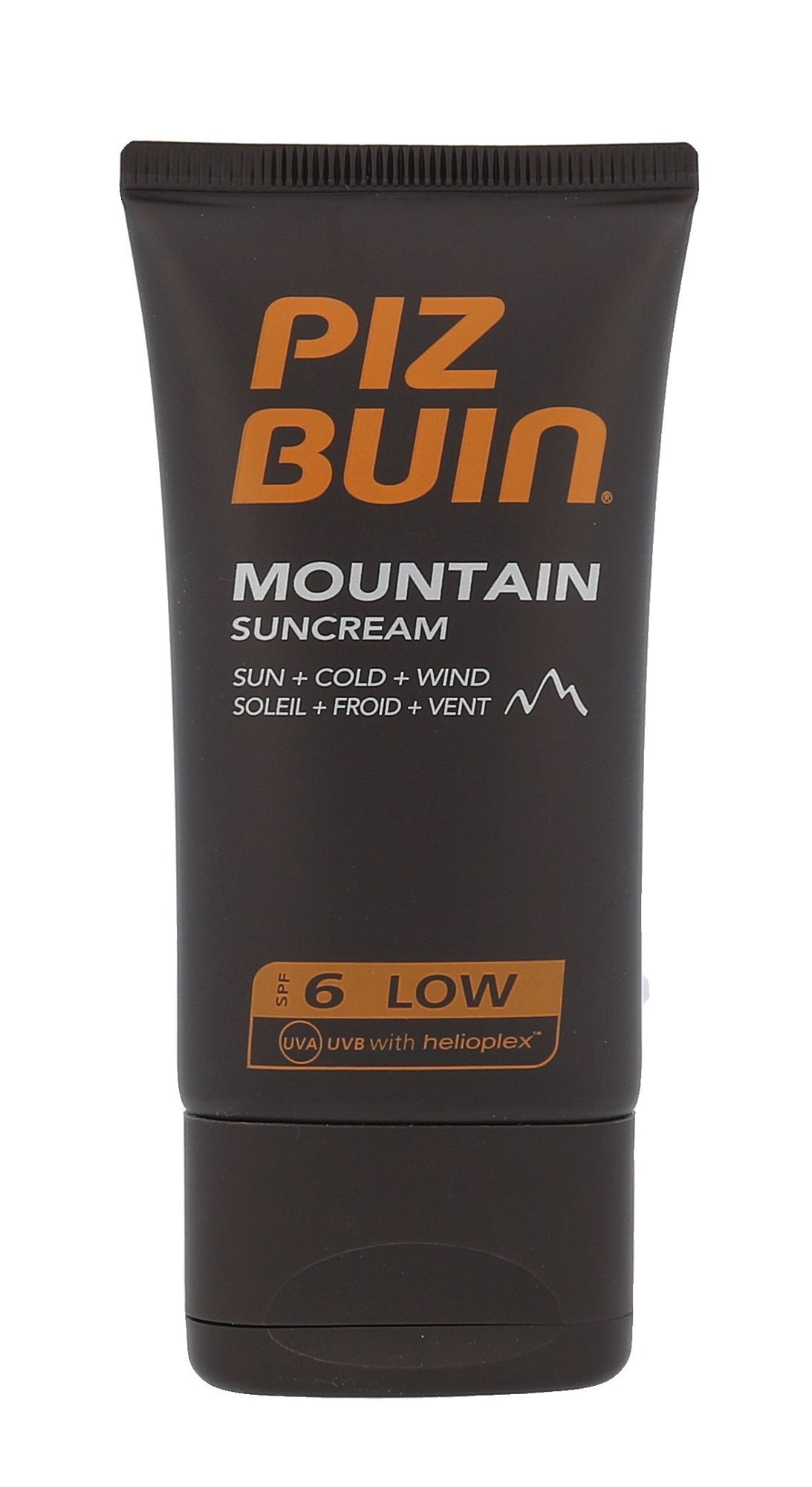 Opalovací krém Piz Buin Mountain Suncream SPF6. Opalovací krém Piz Buin Mountain Suncream SPF6 chrání pokožku proti škodlivému slunečnímu záření. Zároveň poskytuje pleti celodenní ochranu před chladem a větrem. Poskytuje pleti maximální ochranu i v extrémních podmínkách. Fotostabilní systém UVA...