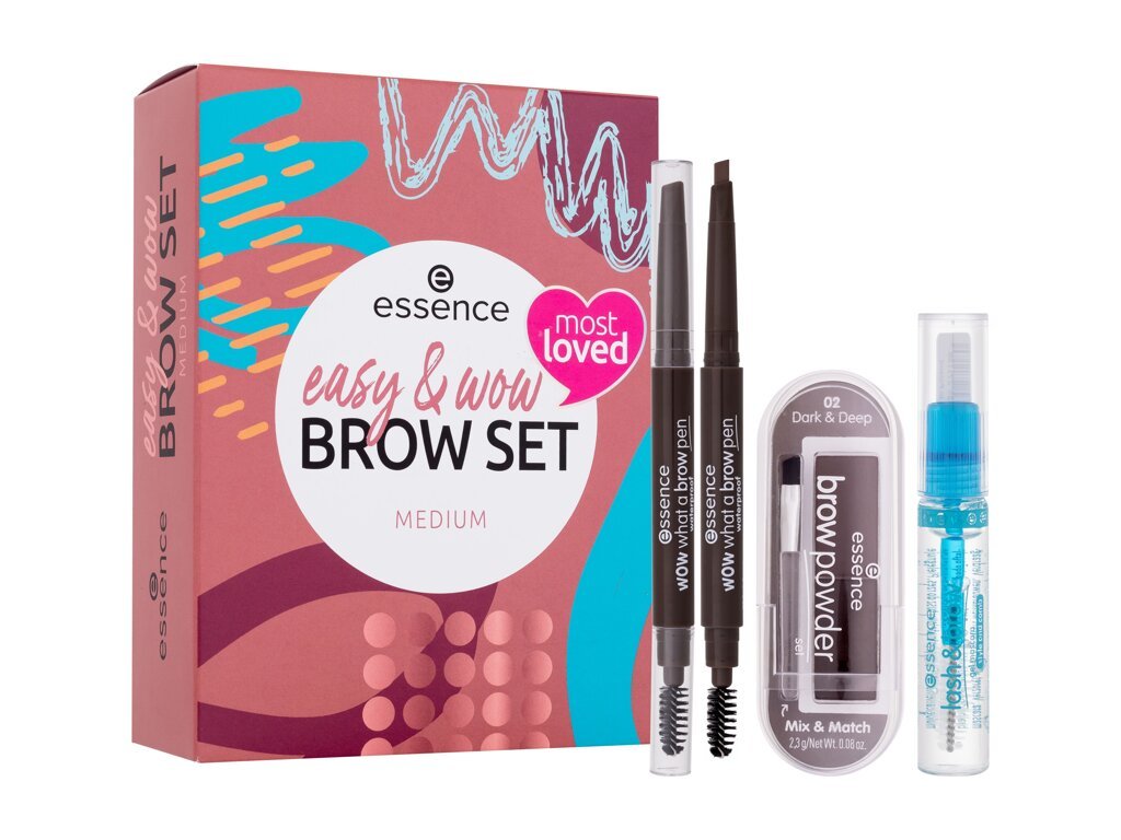 Essence Easy & Wow tužka na obočí What A Brow Pen Waterproof 0,2 g 03 Dark Brown + gelová řasenka na obočí Lash & Brow Gel Mascara 9 ml + pudr na obočí Brow Powder 2,3 g 02 Dark & Deep