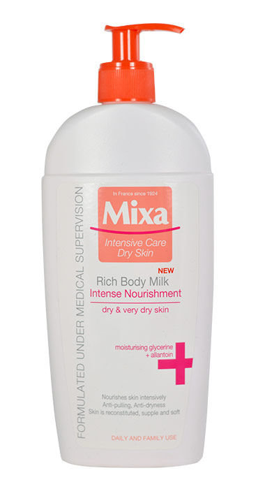 Tělové mléko Mixa Intense Nourishment Rich Body Milk uvítají lidé se suchou a velmi suchou pokožkou, neboť přináší okamžitou úlevu od nepříjemného pnutí a šupinkovatou kůži intenzivně hydratuje a zjemňuje. Jak tělové mléko Mixa pečuje o suchou pokožku? intenzivně vyživuje a hydratuje po dobu 24...