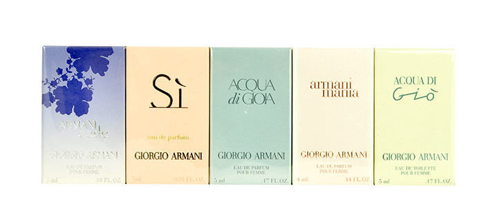 Giorgio Armani Mini Set 2 edt Acqua di Gio Pour Femme 5 ml + edp Mania Pour Femme 4 ml + edp Acqua di Gioia 5 ml + edp Si 7 ml+ edp Code Women 3 ml