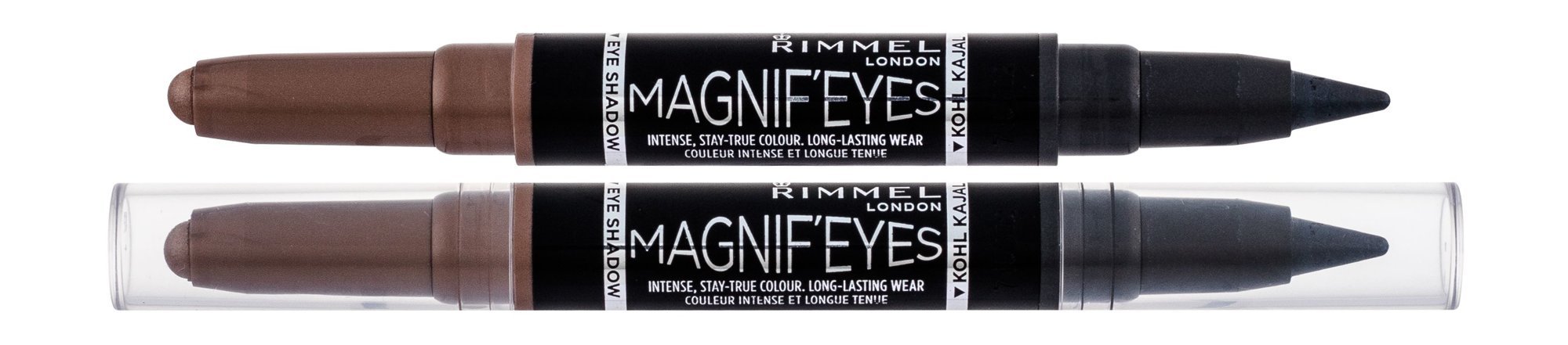 Oční stíny a kajalová tužka 2v1 Rimmel London Magnif Eyes.Oční stíny a kajalová tužka 2v1 mají krémovou konzistenci s vysokou pigmentací, která má dlouhotrvající výdrž trvající až 24 hodin. Jednotlivé odstíny očního stínu a kajalové tužky s jemným shimmerem k sobě dokonale ladí, čímž umožní...