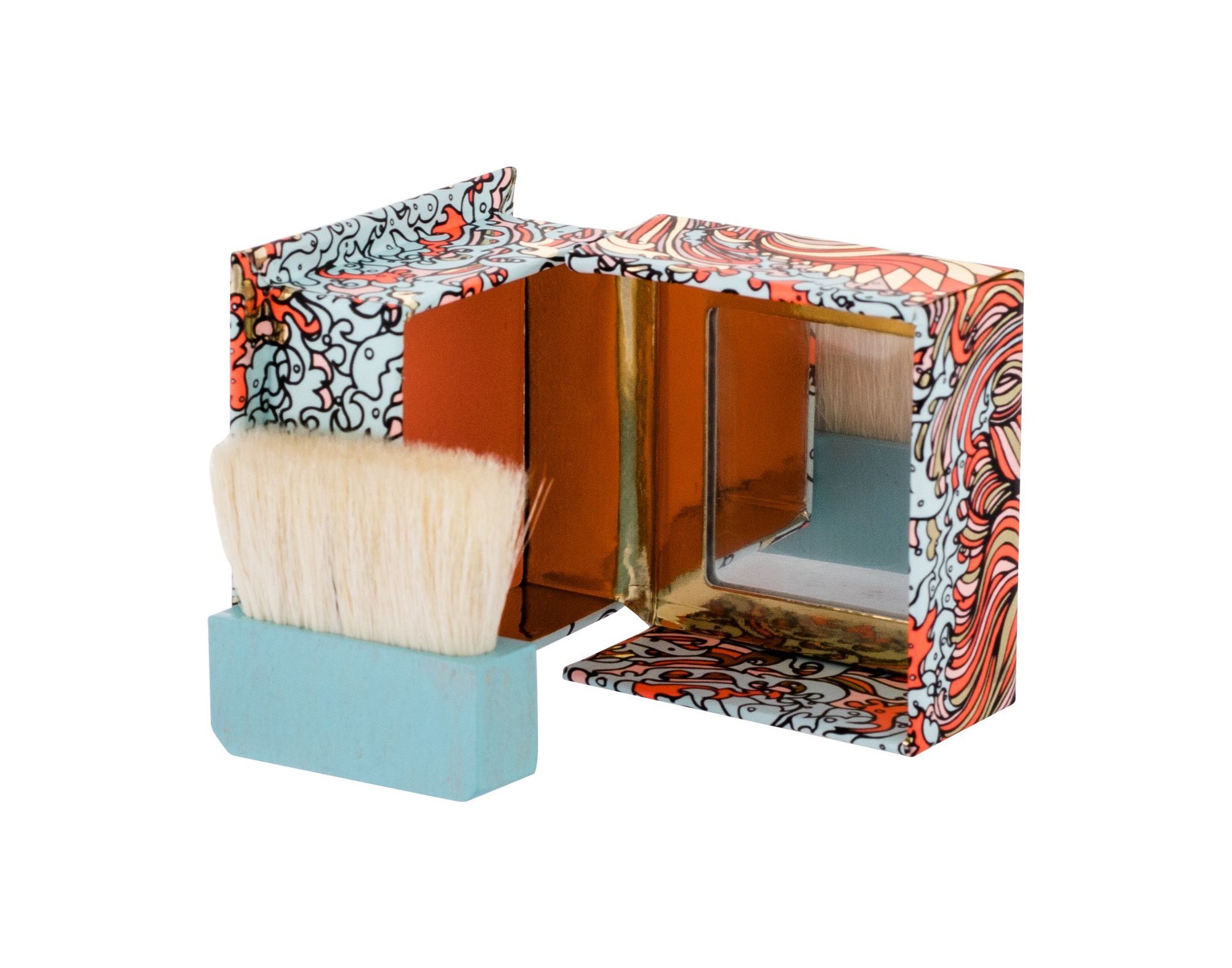 Přiloženým štětcem přejeďte po tvářence, sklepejte nadbytečné množství a několika tahy aplikujte na tváře.