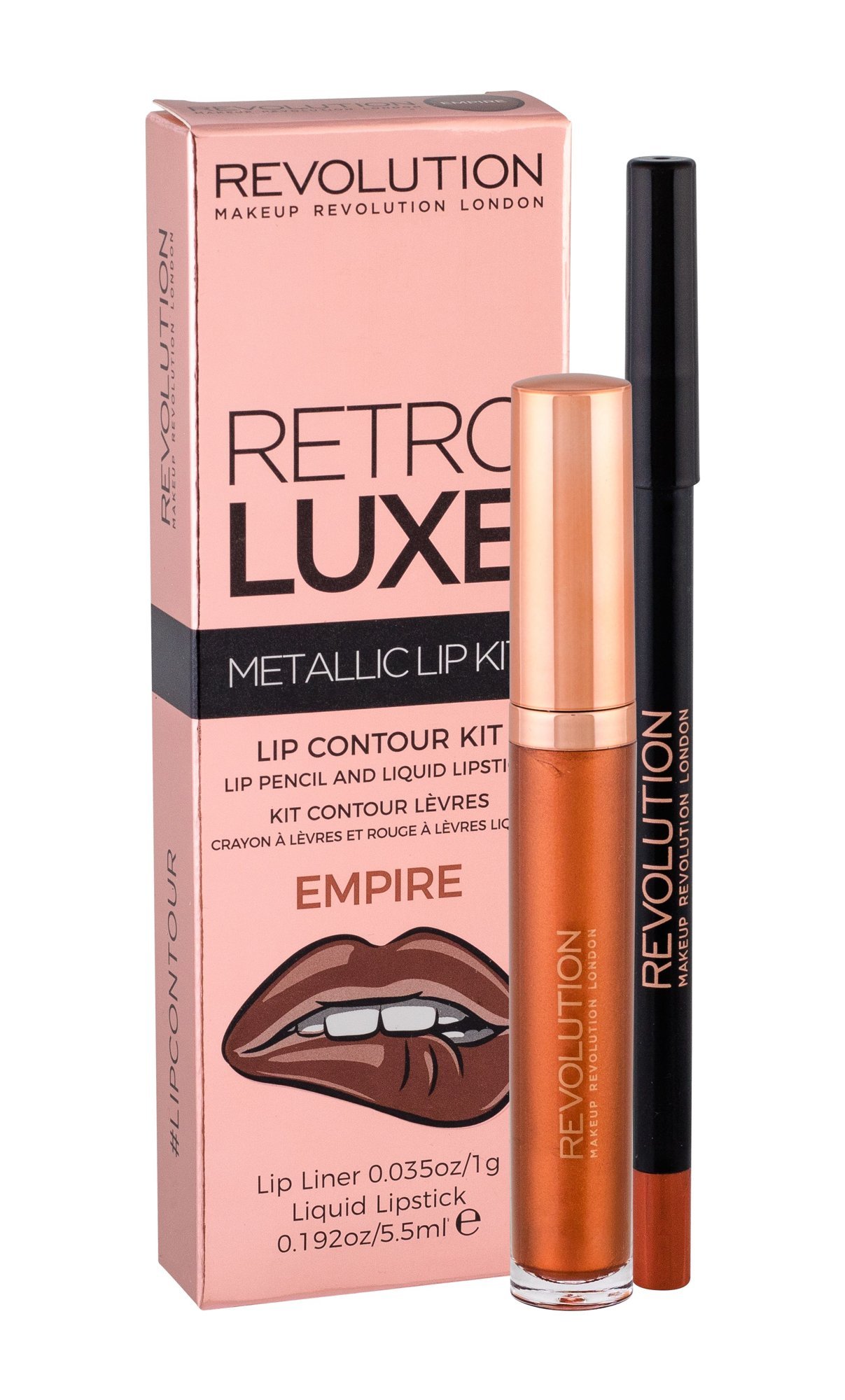 Dárková sada Makeup Revolution London Retro Luxe Metallic Lip Kit.Složení kazety:tekutá rtěnka 5,5 ml Tekutá rtěnka dodá rtům krásnou metalickou barvu. Odolné složení zajišťuje bezchybný vzhled během celého dne.konturovací tužka na rty 1 gTužka na rty se snadno nanáší a zajišťuje dlouhotrvající...