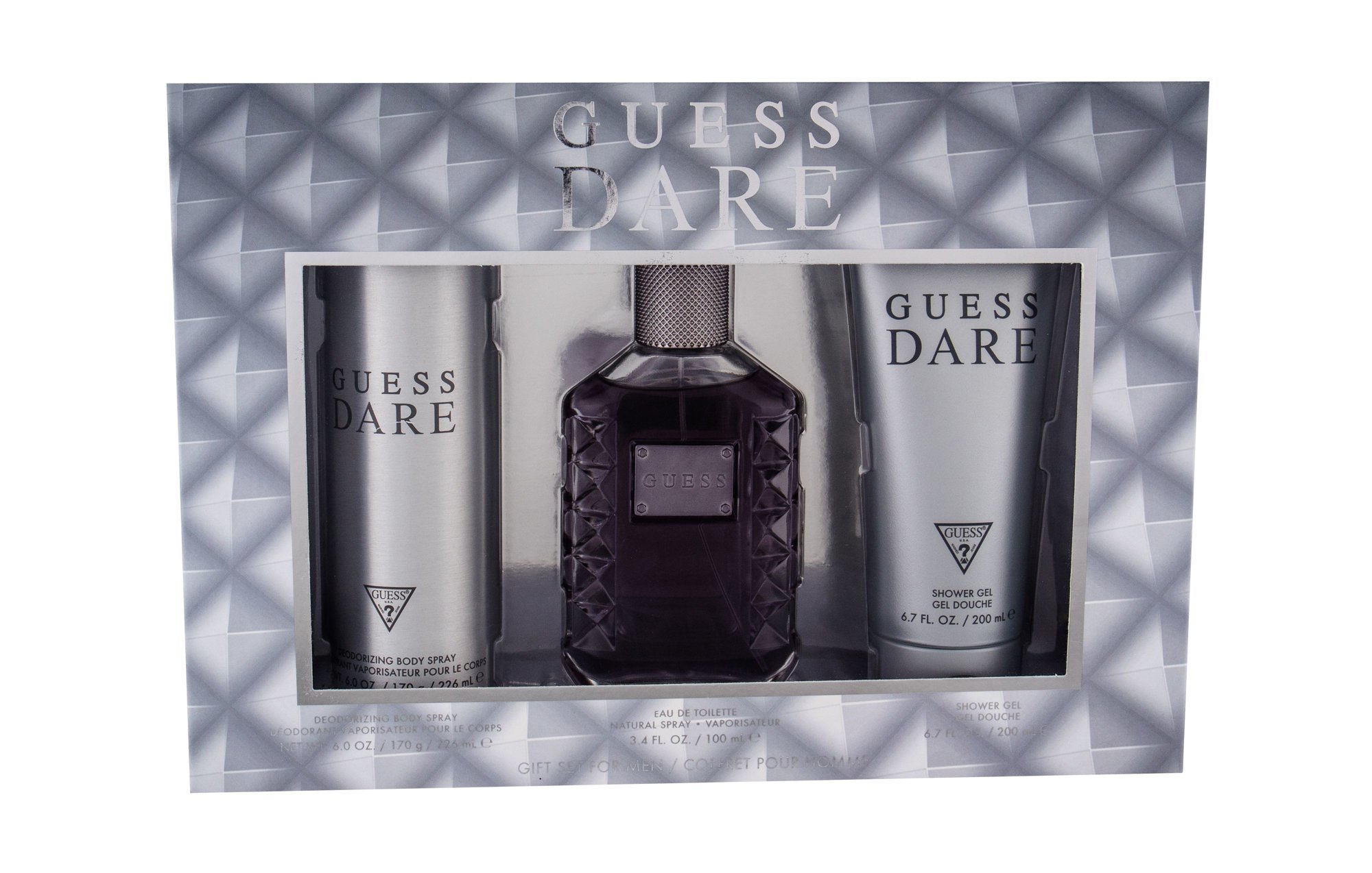 Kořeněná vůně pro muže Guess Dare. V úvodu se mísí tóny svěžího bergamotu, jalovce a pikantního bílého pepře. Jasmín, kašmír a palrgónie tvoří srdce vůně, které pozvolna přecházejí do dřevitého základu, který obsahuje cedr, pačuli a pižmo. Vůně Guess Dare vyzařuje mužnost, sílu, svobodu. Guess Dare skvěle doplní Váš styl.