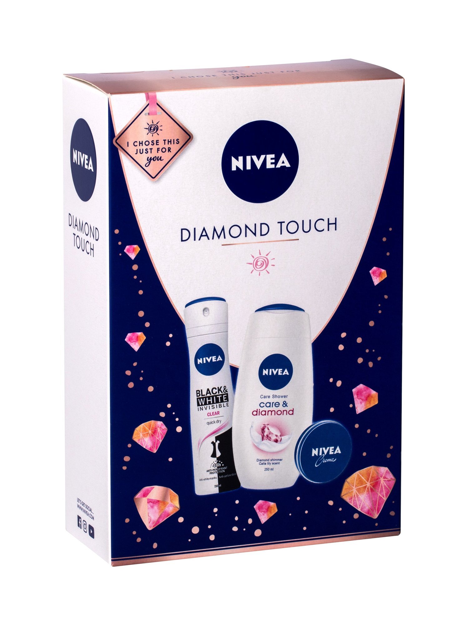 Nivea Care & Diamond sprchový krém 250 ml + antiperspirant Black & White Invisible Clear 150 ml + univerzální krém 30 ml