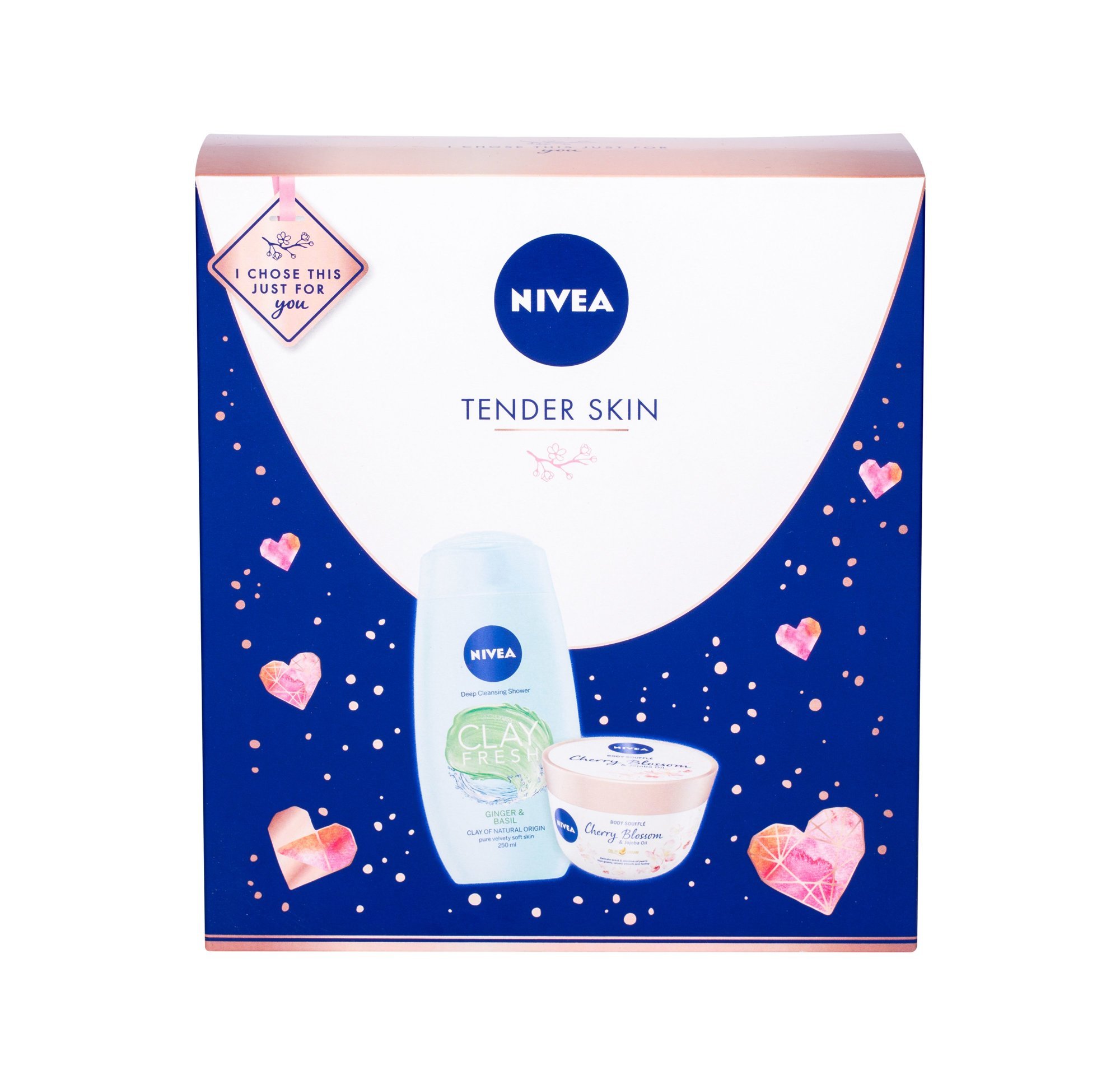 Nivea Clay Fresh sprchový gel 250 ml + tělové suflé Cherry Blossom 200 ml