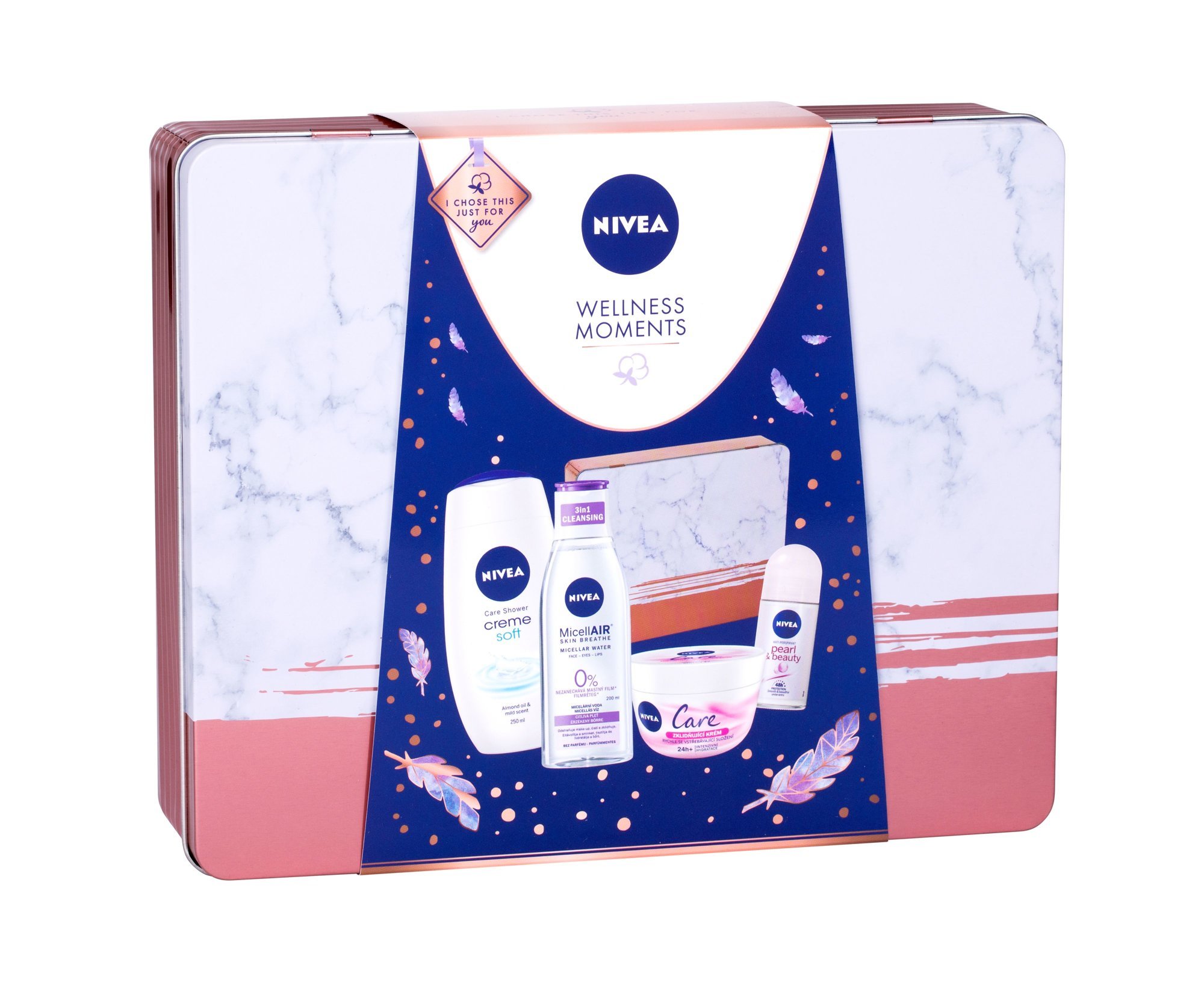 Nivea Care zklidňující krém 200 ml + sprchový krém Creme Soft 250 ml + micelární voda MicellAIR 200 ml + roll-on Pearl & Beauty 50 ml + plechová dóza