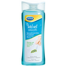 Koupel pro nohy Scholl Velvet Smooth Foot Soak. Scholl Velvet Smooth Foot Soak zjemňuje pokožku a zároveň ji hydratuje. Obsahuje zelený kaviár a vitamín E pro příjemnou relaxaci a očistu chodidel.Použití: Aplikujte 15 ml do 3-5 l teplé vody. Na suché nohy poté aplikujte hydratační krém.