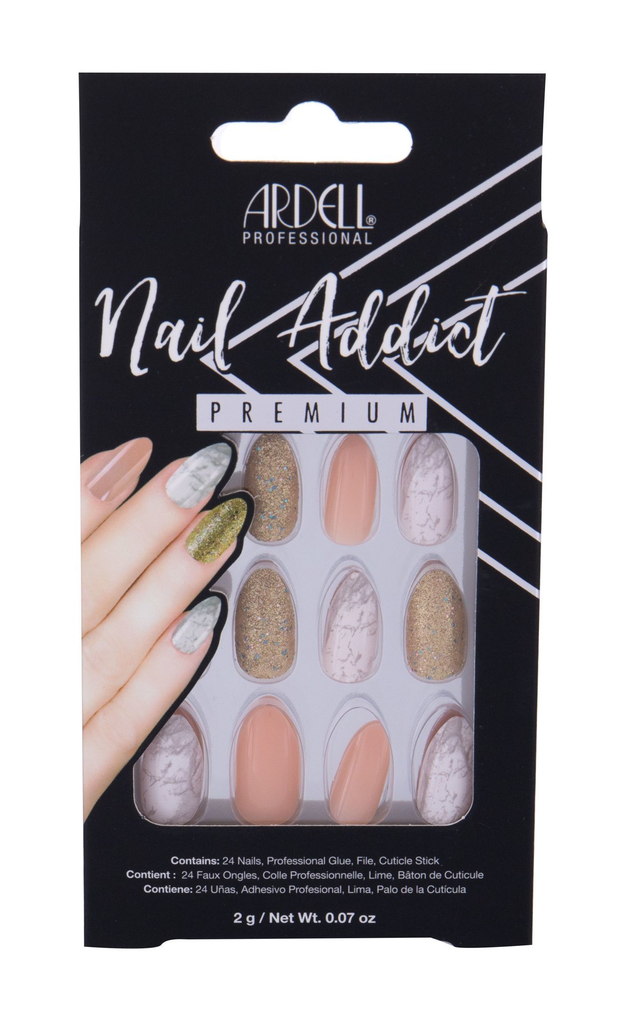 Ardell Nail Addict umělé nehty 24 ks + lepidlo na umělé nehty 2 g + pilník na nehty 1 ks + zatlačovadlo na nehty 1 ks