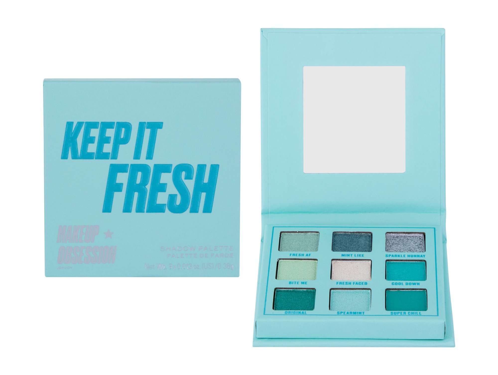 Zdůrazněte krásu svých očí pomocí paletky stínů Makeup Obsession Keep It Fresh. Díky své velikosti se vejde do každé kabelky a vy ji tak můžete mít kdykoliv po ruce. Obsahuje 9 vysoce pigmentovaných matných a třpytivých stínů v mátově zelených a tyrkysových odstínech.