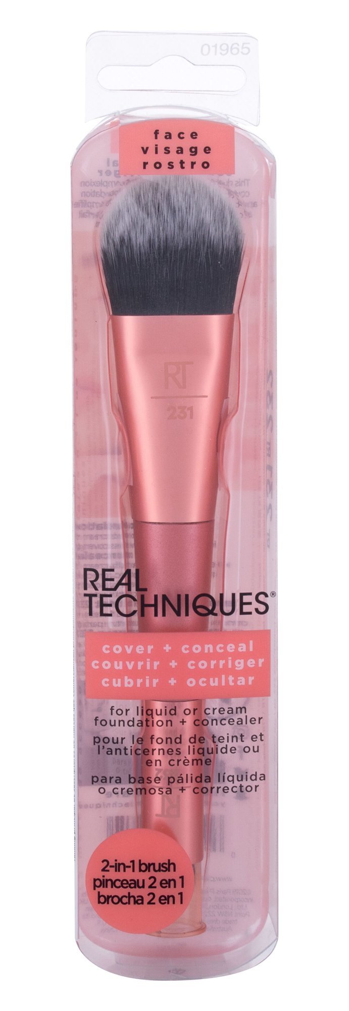 Vytvořte perfektní líčení díky jednomu kosmetickému štětci s dvojím zakončením Real Techniques Brushes Cover + Conceal. Je to perfektní pomocník pro nanášení make-upu a korektoru. Zajistí vám dokonalé prolínání a rozmazání pro přirozený vzhled.