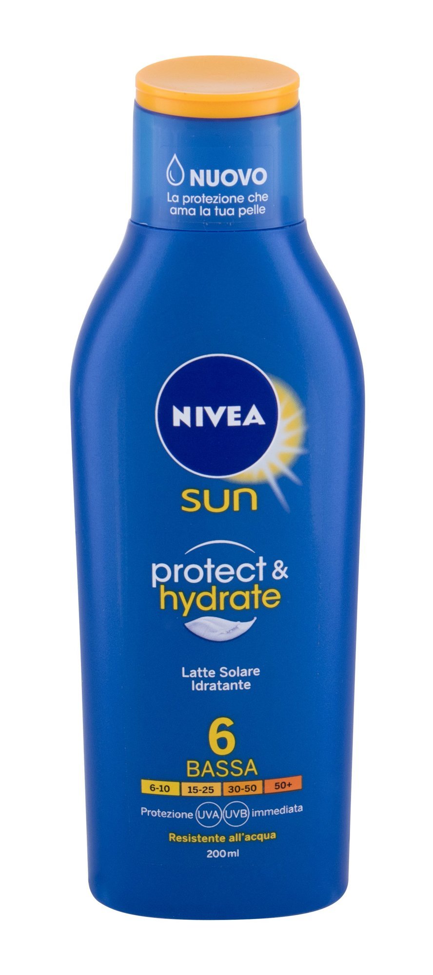 Nivea Sun Protect & Hydrate Sun Lotion SPF6 je velmi osvěžující opalovací mléko, které pokožku intenzivně hydratuje a zanechává jí hedvábně jemnou.