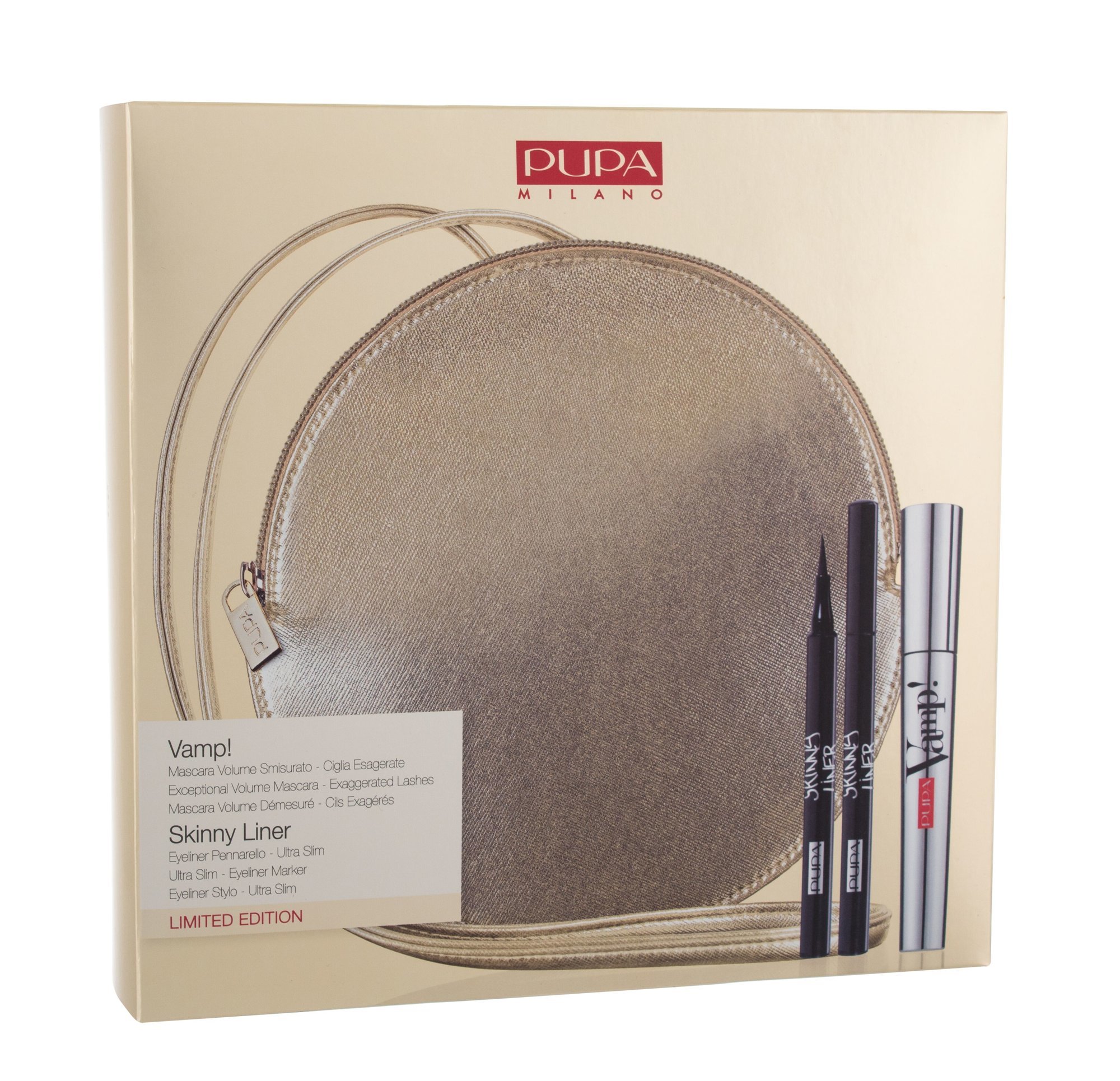 Pupa Vamp! řasenka Vamp! 9 ml + oční linka Skinny Liner 1 ml 001 Extra Black + kabelka