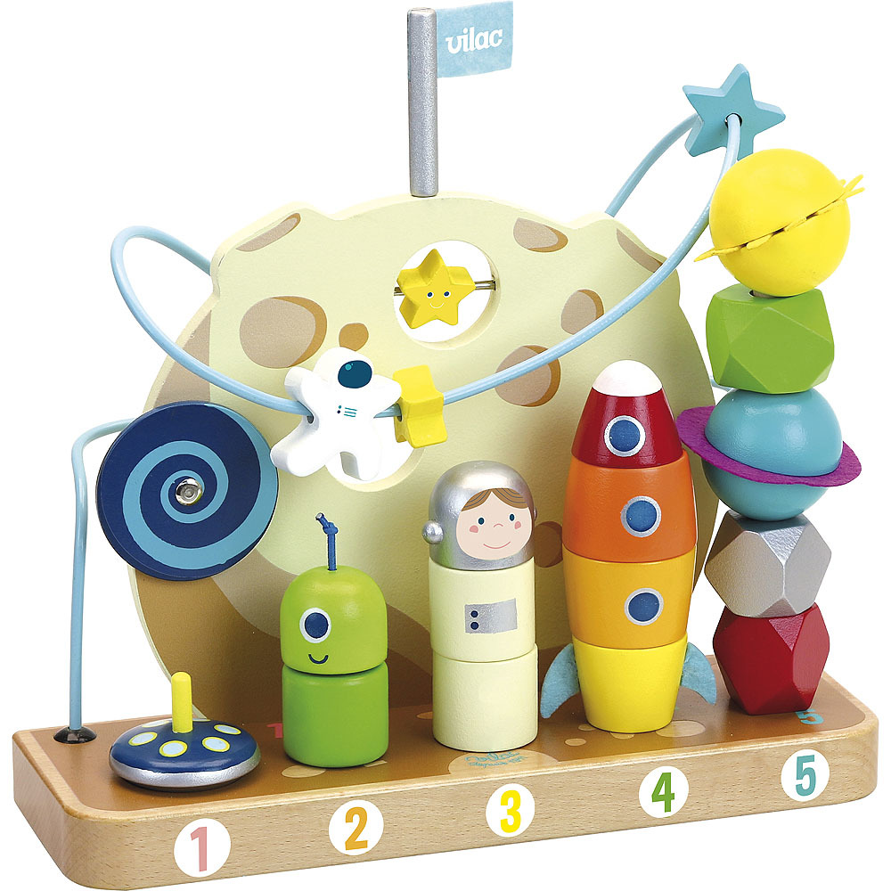 Mezigalaktický prostor, marťan, astronaut, raketa, planety, které můžete naskládat a počítat! Hvězdy, které můžete posouvat po drátku. Hvězdná dřevěná hračka pomůže s motorikou a vývojem dítěte. Hračky Vilac mají značku francouzské agentury ADEME, to znamená, že tyto dřevěné hračky jsou vyráběny...