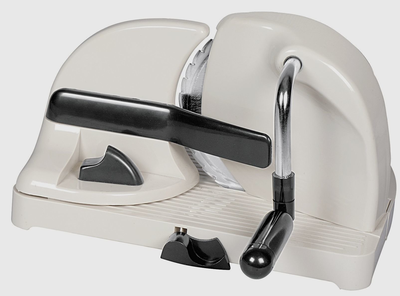 Univerzální mechanický ruční kráječ na chléb s broušeným řezným kotoučem z nerezové oceli a se silnou přísavkou pro upevnění k hladké pracovní ploše. Kráječ je vybaven přítlačnou krytkou pro bezpečné krájení malých kusů a sklápěcí opěrnou plochou pro lepší skladování. Materiál - ABS, řezný kotouč...