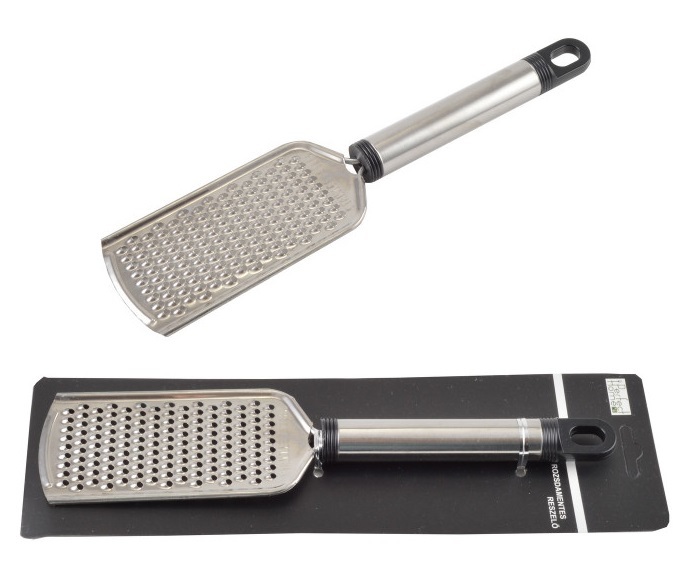 kuchyňské nerezové ploché struhadlo s malou slzou struhadlo je možné zavěsit díky integrovanému očku na ručce vhodné na strouhání ovoce, zeleniny, sýru, čokolády apod. vhodné do myčky nádobí délka 25 cm, šířka 5.8 cm EAN 5999563646730 prečítať celé
