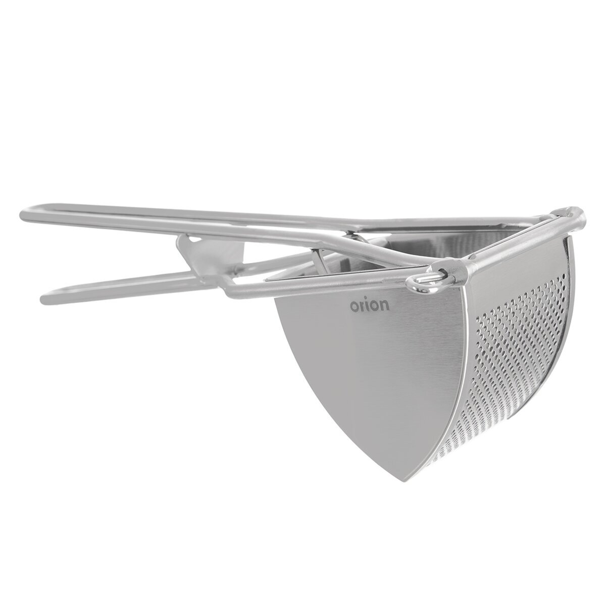 Nerezový lis na brambory pro lisování vařených brambor na přípravu bramborových těst. Můžete ho využít také pro odšťavování citrusů, rajčat, na pasírování zeleniny, měkkého nebo vařeného ovoce, česneku... Materiál: masivní kvalitní nerez. Rozměry: d. 30 cm, š. 9,5 cm, celkově včetně spojovací osy...