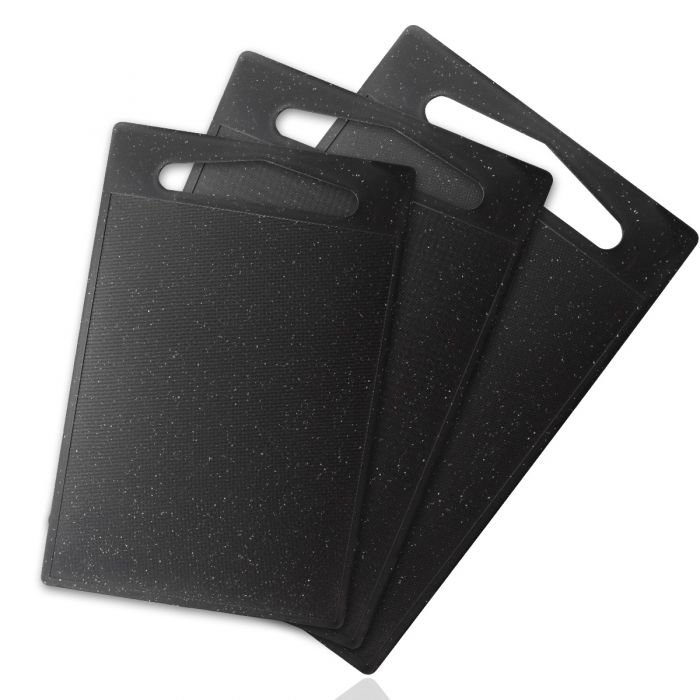 –Sada prkének/ krájecích podložek s granitivým vzhledem ve 3 různých velikostech S/M/L - Vhodné pro řezání např. maso, ryby, zelenina a ovoce – PP plast v žulovém vzhledu bezpečný pro potraviny: – Bez pogumování - Žádný nepříjemný plastový zápach – Zaoblené boční hrany - Řezná plocha šetrná k...