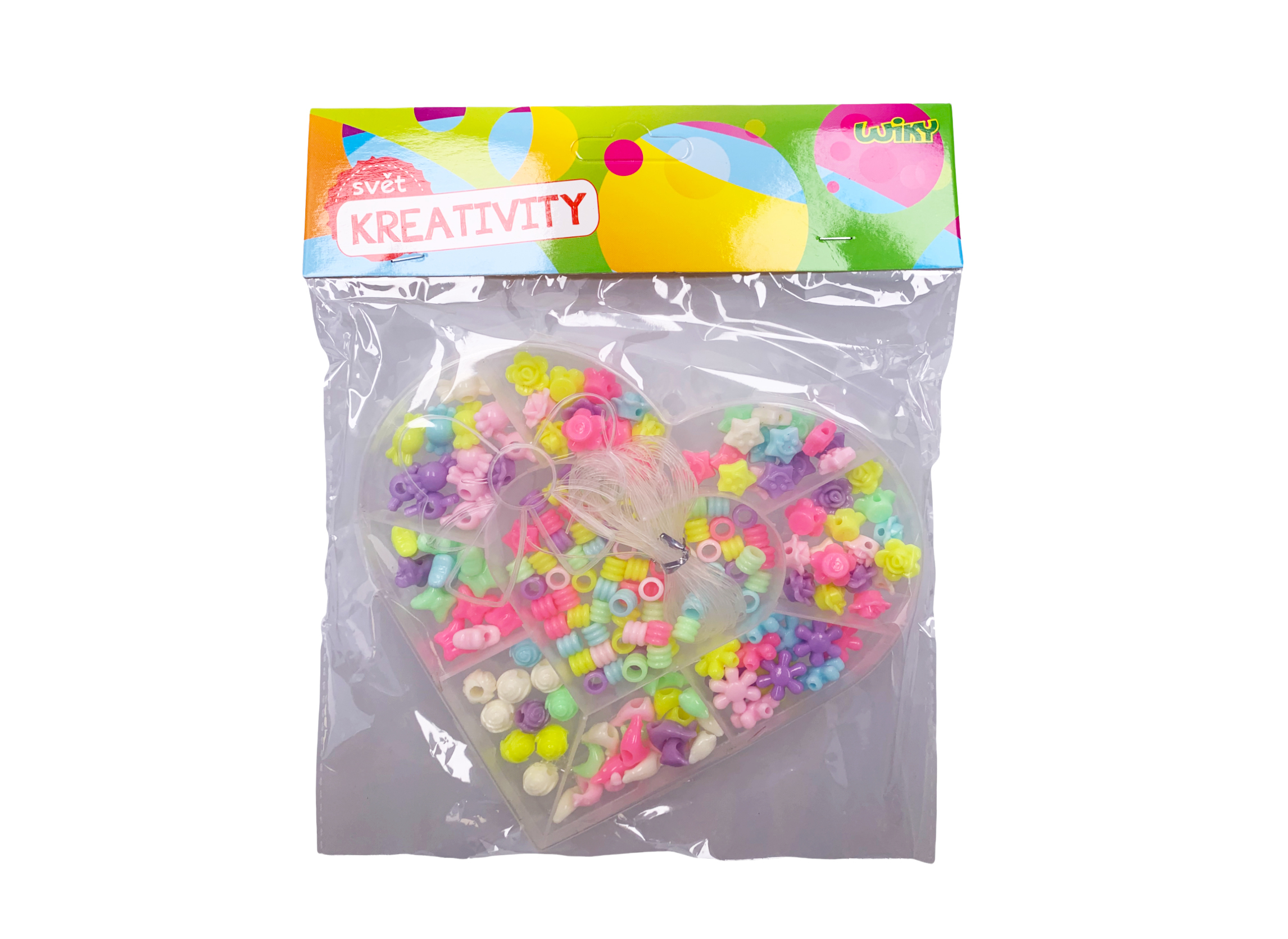 Korálkový set o hmotnosti 55g ve tvaru srdce.9 různých druhů korálků + provázek. prečítať celé