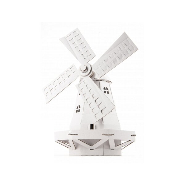 Wiatrak holenderski z tektury do składania. Charakterystyczną cechą tego typu wiatraków jest nieruchomy główny korpus oraz obrotowa wieżyczka, którą można odpowiednio ustawić do wiatru. Śmigło wiatraka swobodnie kręci się wokół osi. Po odpowiednim wyprofilowaniu łopat wystarczy dmuchnąć i śmigło...
