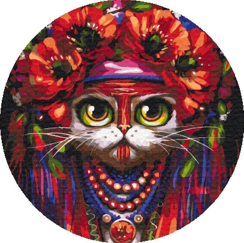 Malowanie po numerach okrągłe - Kot w wianku 40cm