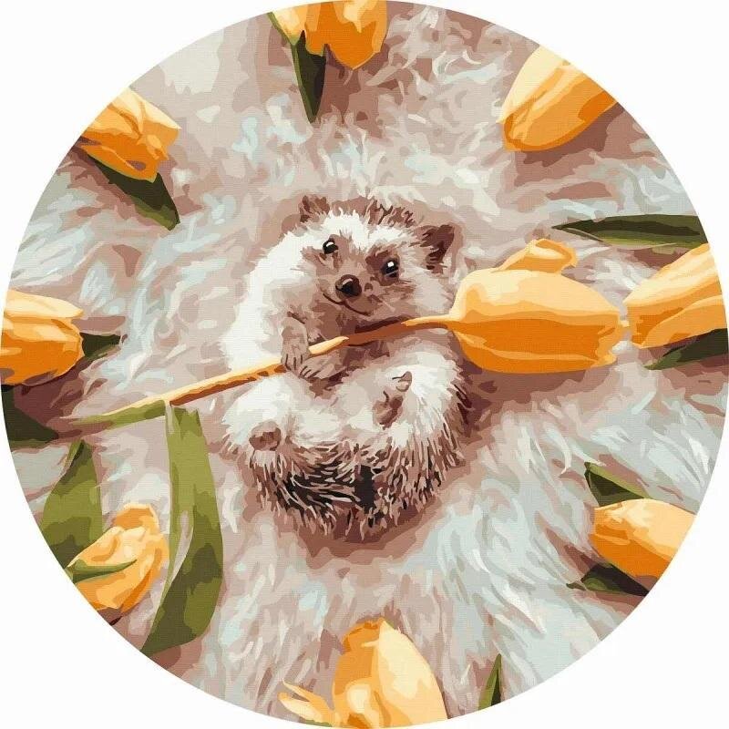 Malowanie po numerach okrągłe - Jeż w kwiatach 40