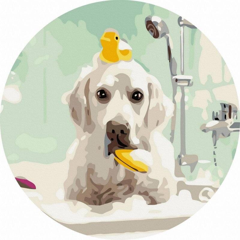 Malowanie po numerach okrągłe - Pies w łazience 40