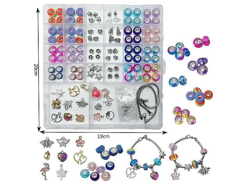 zestaw do robienia bransoletek - charms, koraliki, aplikacje, w pudełku; 22x20x3cm, Box prečítať celé