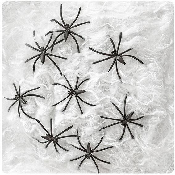Biała pajęczyna z czarnymi pająkami. Sieć pająka pajęczyna dekoracja wykonana ze specjalnego materiału tworząca niesplątującą się, solidną i bardzo obszerną sieć to idealna propozycja na Halloween.Pajęczyna z syntetycznego materiiału w kolorze białym, spisze się świetnie jako przerażająca...