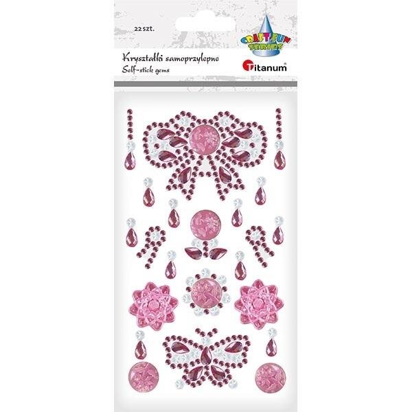 Kryształki samoprzylepne kokarda 67x47mm, motyl 46x33mm, kwiat, biżuteria mix rozmiarów różowo-białe 22szt. prečítať celé