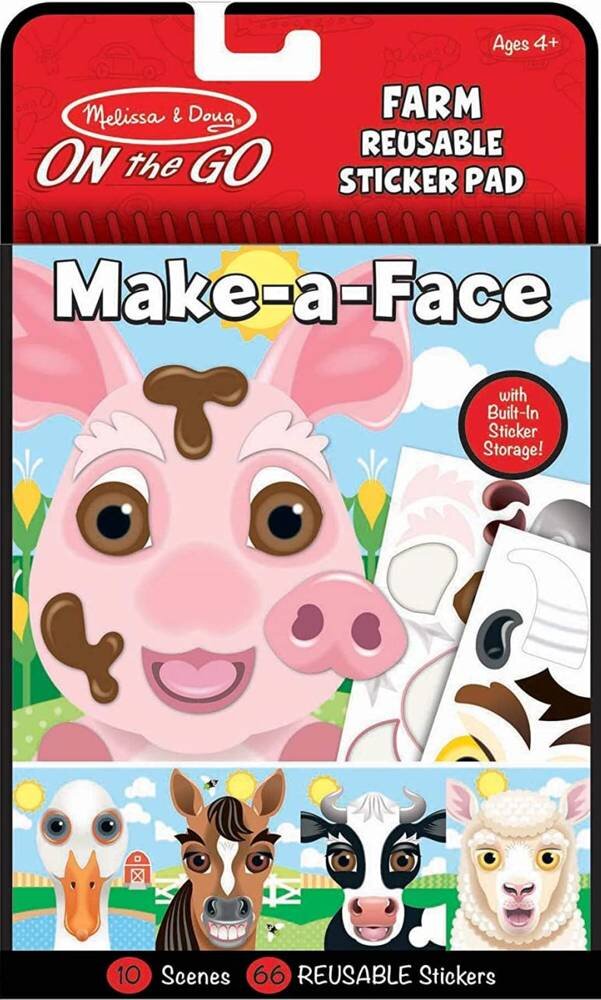 Dziesięciostronicowa książeczka Stwórz Twarz Melissa & Doug z zabawnymi naklejkami pozwala dzieciom stworzyć wesołe twarze zwierzątek z farmy. 66 naklejek wielokrotnego użytku pozwala na dobranie zwierzakom oczu, nosów, ust i wiele innych dodatków. Uroczy zestaw Melissa and Doug posiada spiralną podkładkę z wbudowanym schowkiem na naklejki, dzięki czemu będzie idealną zabawką w podróży.