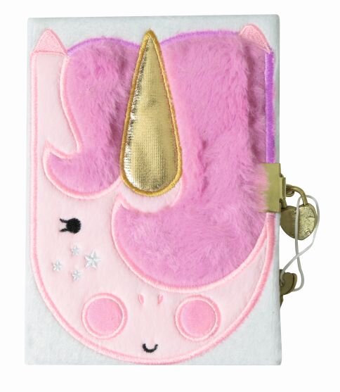 Plyšový deník s obálkou v podobě jednorožce uchová důležité holčičí tajnosti v bezpečí. Celkem 240 linkovaných stránek umožní zaznamenat všechny dívčí zážitky, sny nebo představy o budoucnosti. Součástí deníku je zámek s dvěma klíči.